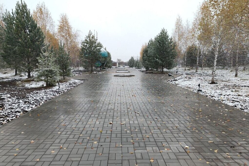 В Вагайском округе Тюменской области продолжается благоустройство парка «Боевое братство». На сегодняшний день выполнено 70% работ: уложено 95% тротуарной плитки, установлены бордюрные камни, подготовлены площадки для детских и спортивных малых архитектурных форм. Первый снег ненадолго скрыл новые пешеходные дорожки, но уже растаял, не помешав строителям.